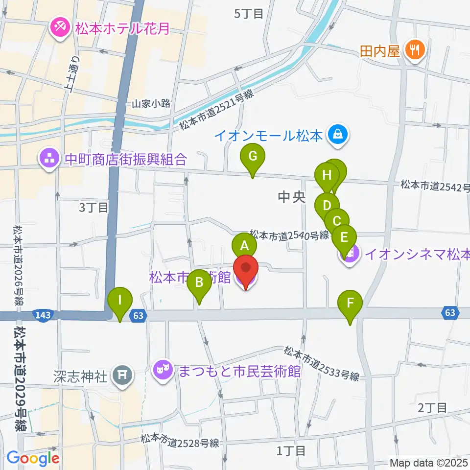 松本市美術館周辺のカフェ一覧地図