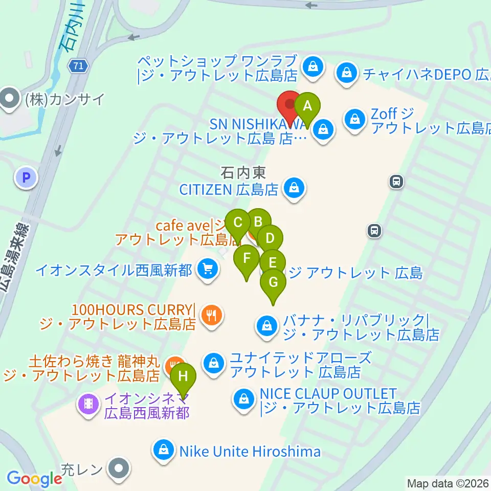 島村楽器アウトレット広島店周辺のカフェ一覧地図