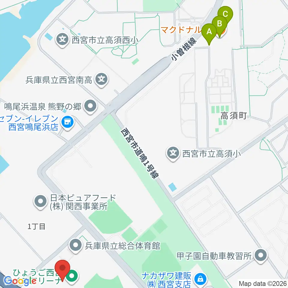 ひょうご西宮アイスアリーナ周辺のカフェ一覧地図