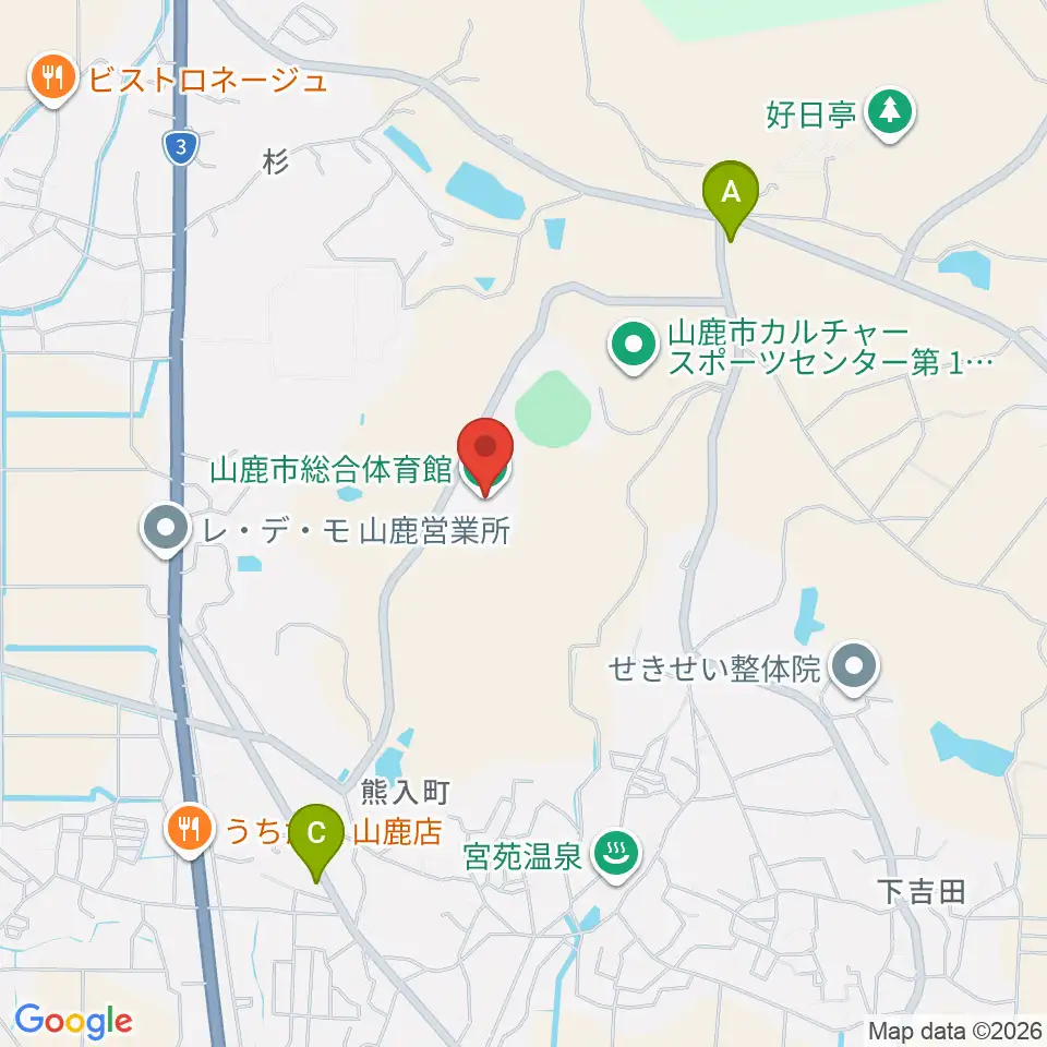 山鹿市総合体育館周辺のカフェ一覧地図