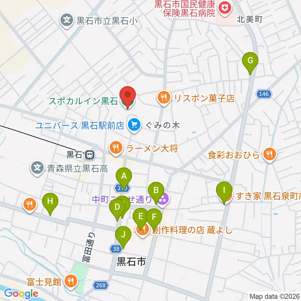 スポカルイン黒石周辺のカフェ一覧地図