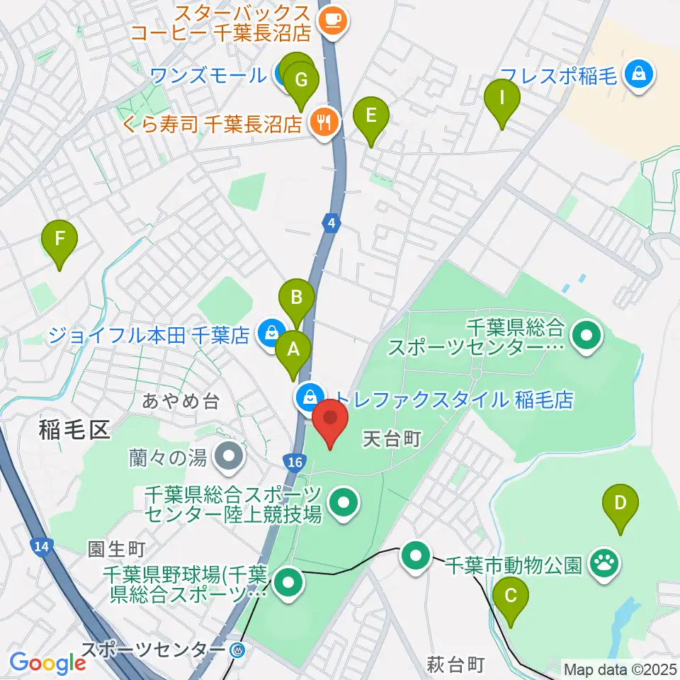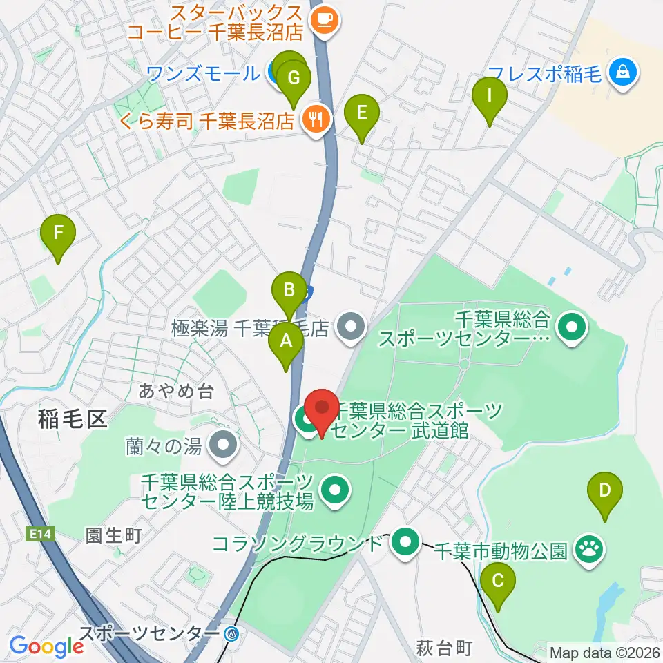 千葉県総合スポーツセンター武道館周辺のカフェ一覧地図