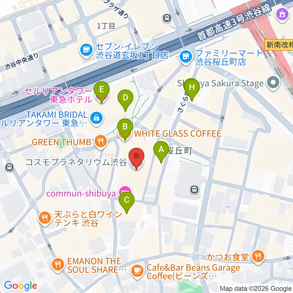 コスモプラネタリウム渋谷周辺のカフェ一覧地図