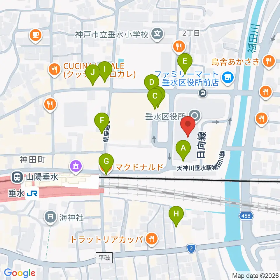 垂水区文化センター レバンテホール周辺のカフェ一覧地図