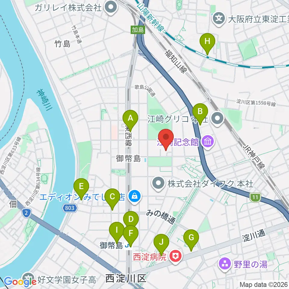 近藤技研工業 西淀川区民ホール周辺のカフェ一覧地図