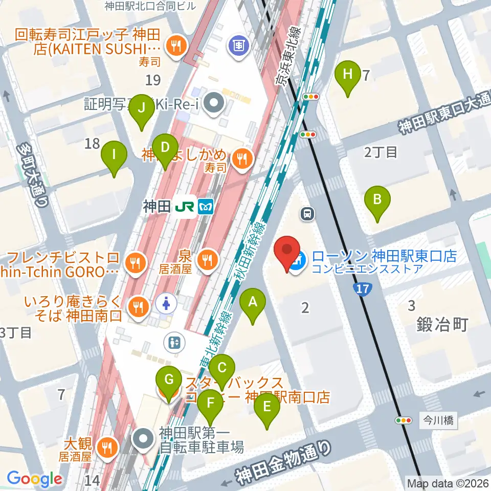 スタジオ音楽館 神田駅前周辺のカフェ一覧地図