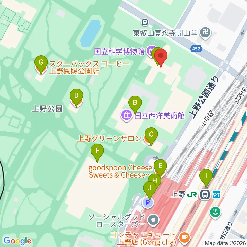 国立科学博物館周辺のカフェ一覧地図