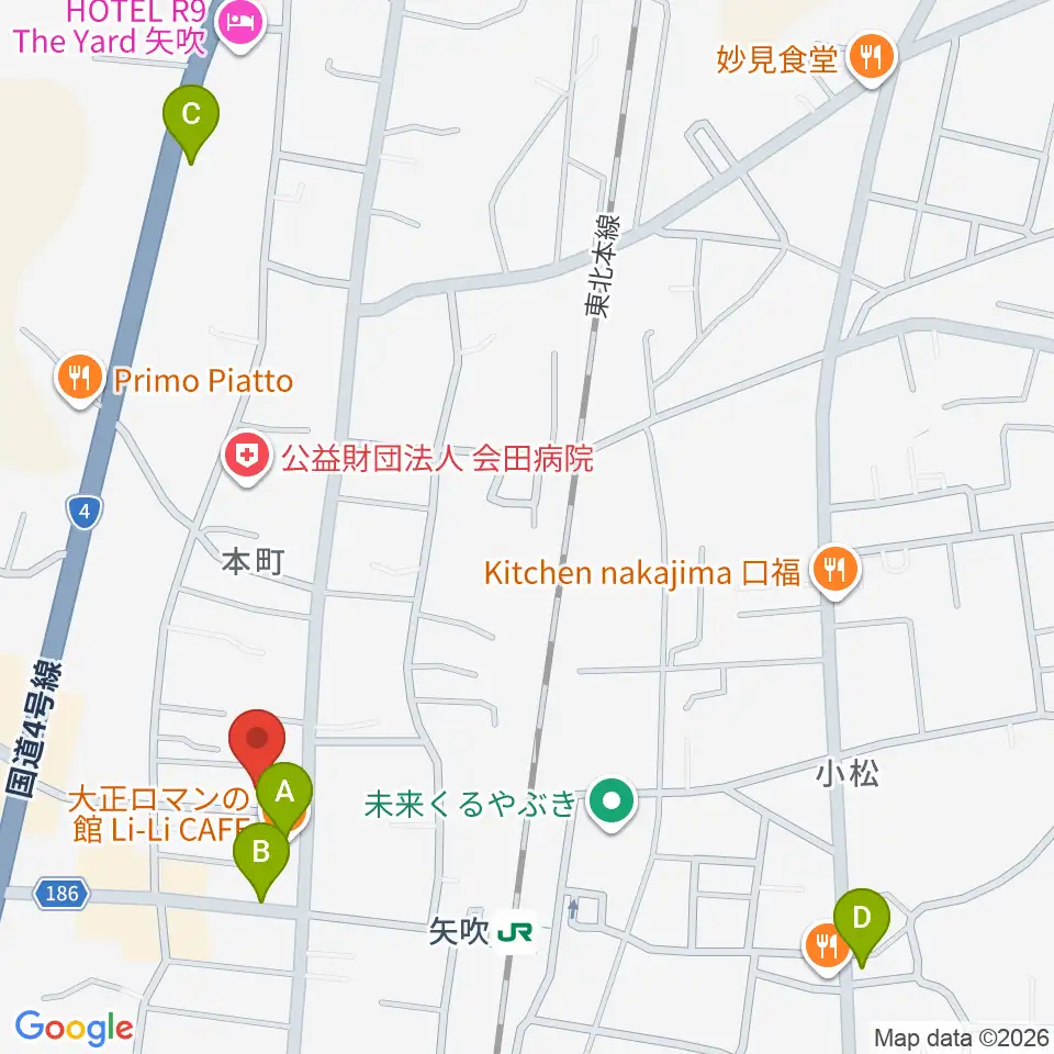 矢吹町複合施設KOKOTTO周辺のカフェ一覧地図
