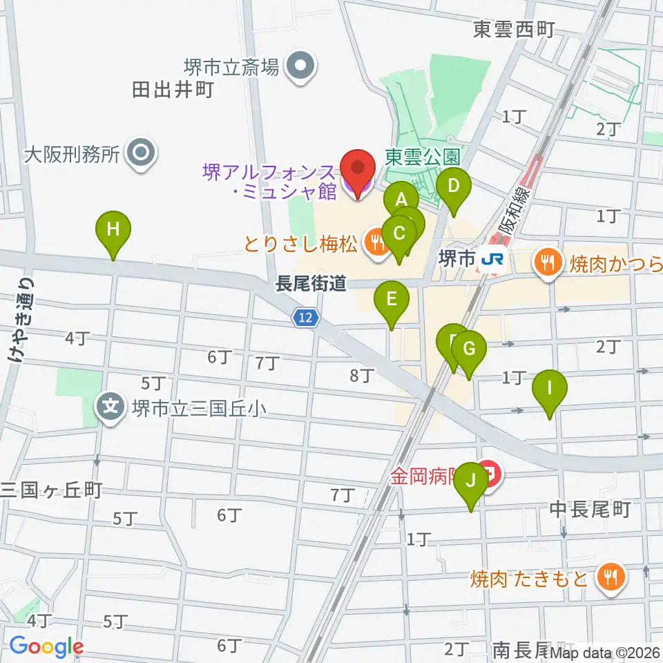 堺アルフォンス・ミュシャ館周辺のカフェ一覧地図