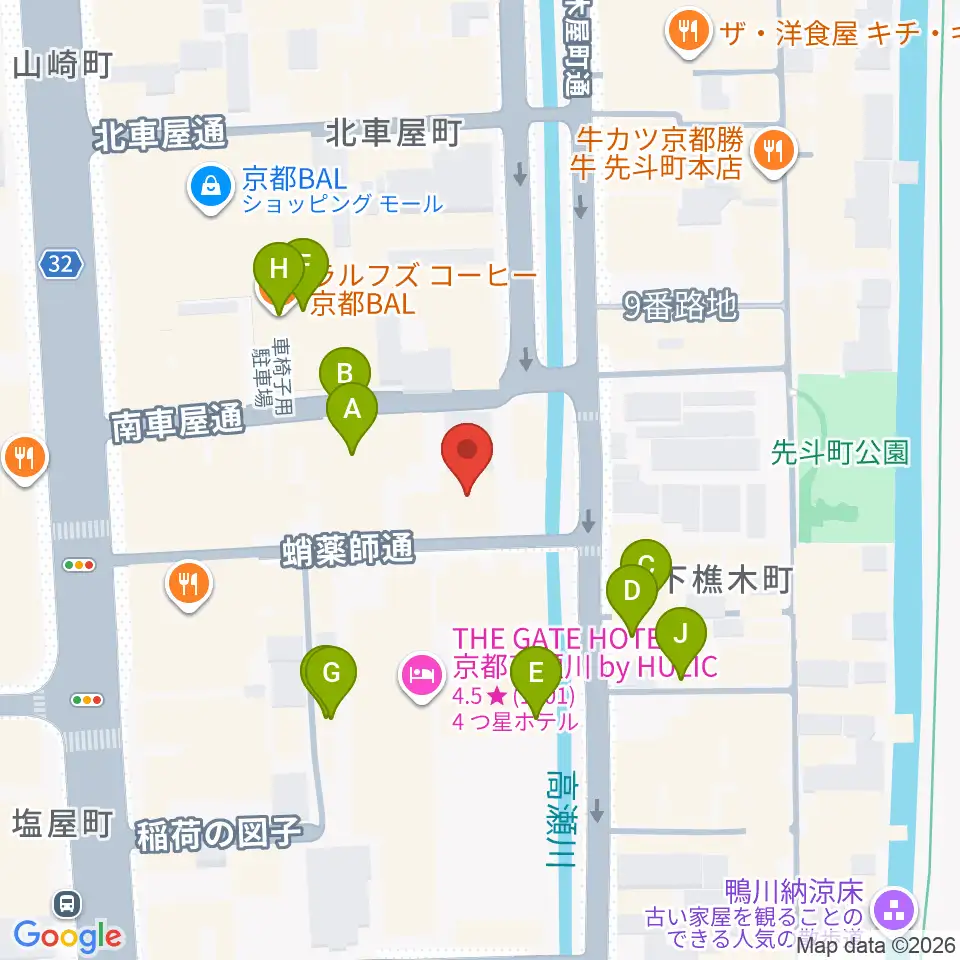 音楽天国・京都河原町店周辺のカフェ一覧地図