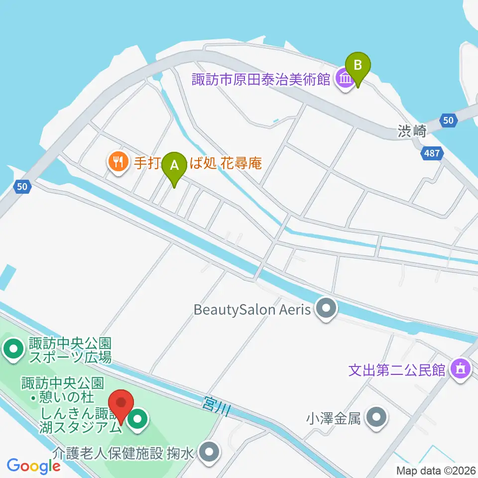 しんきん諏訪湖スタジアム周辺のカフェ一覧地図