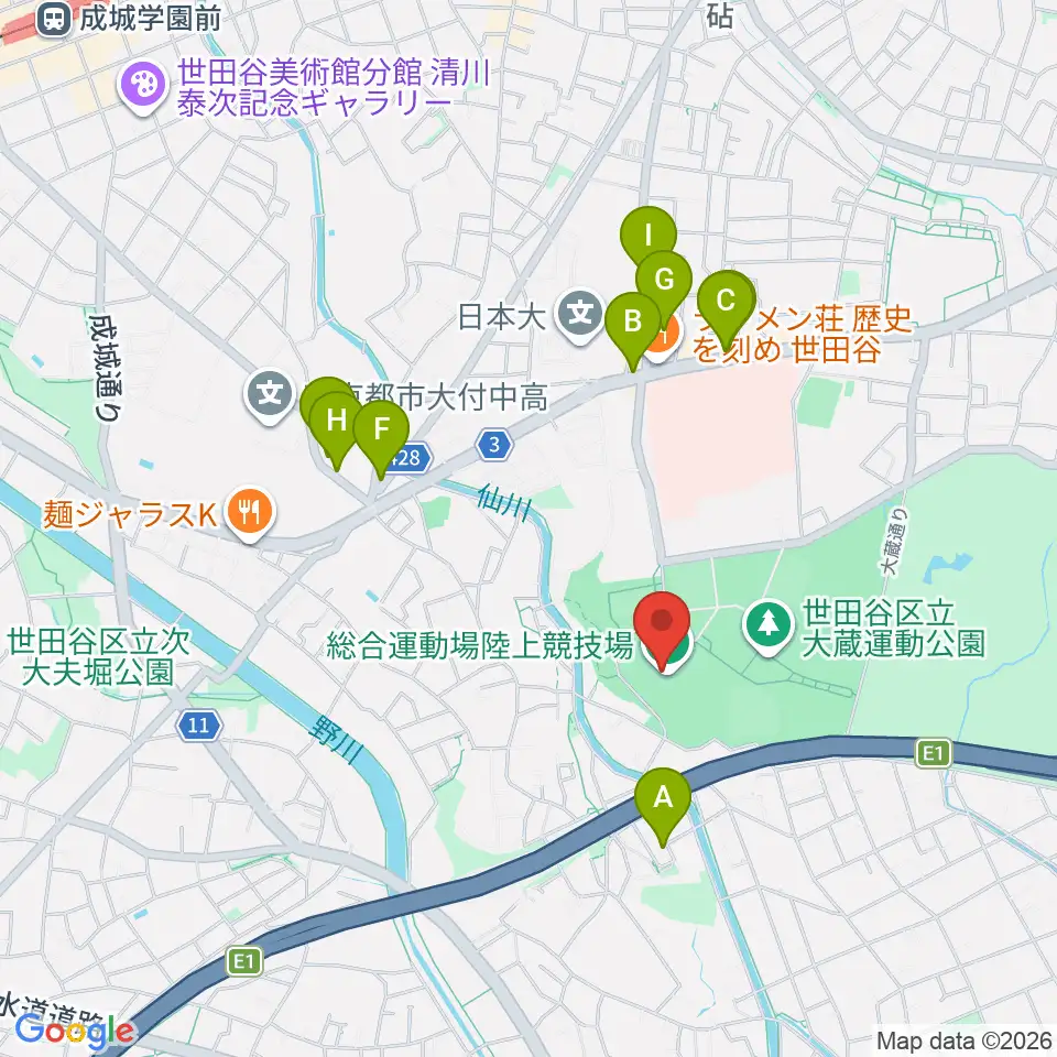 世田谷区立総合運動場陸上競技場周辺のカフェ一覧地図