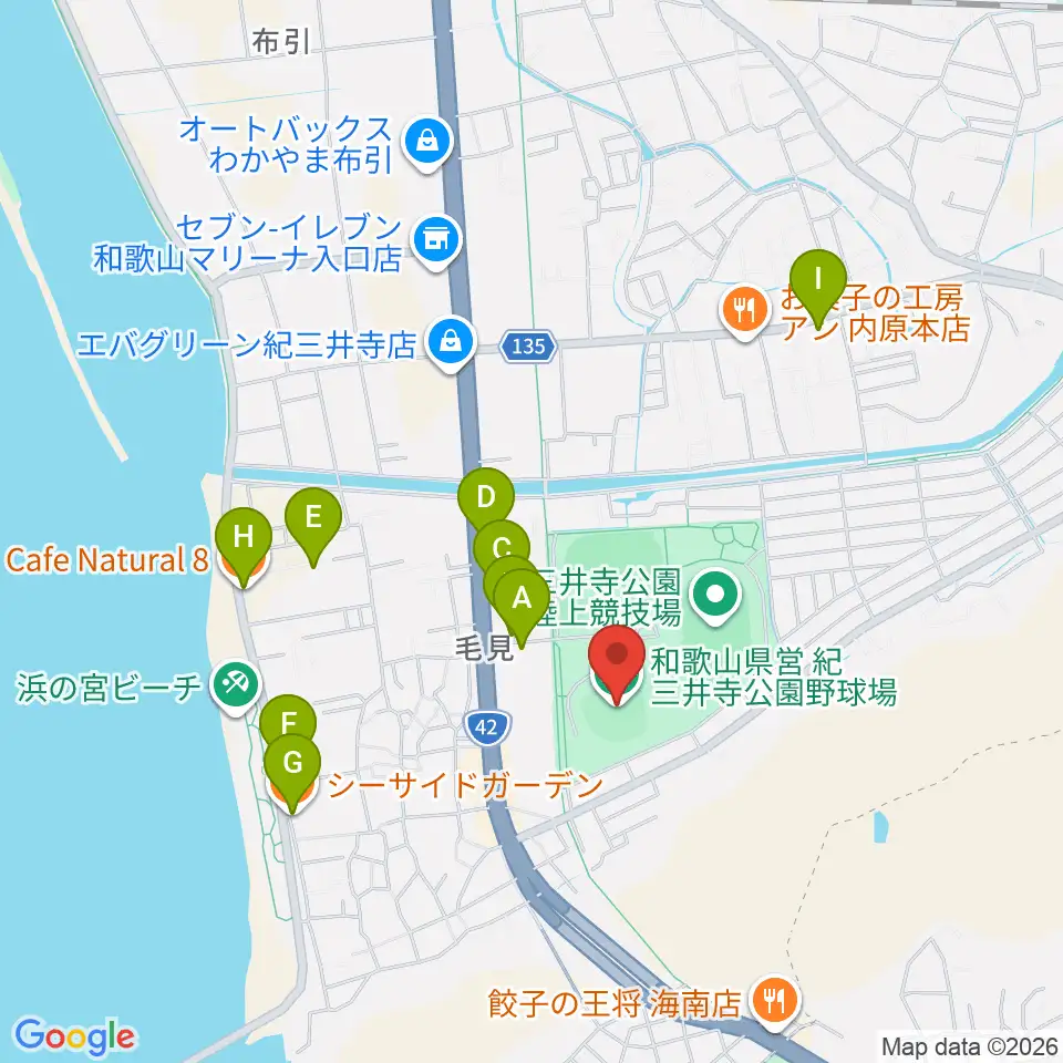 紀三井寺公園野球場周辺のカフェ一覧地図