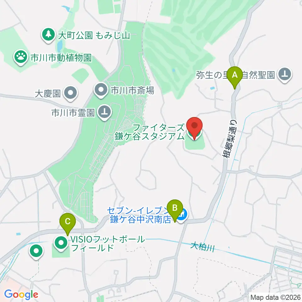 ファイターズ鎌ケ谷スタジアム周辺のカフェ一覧地図