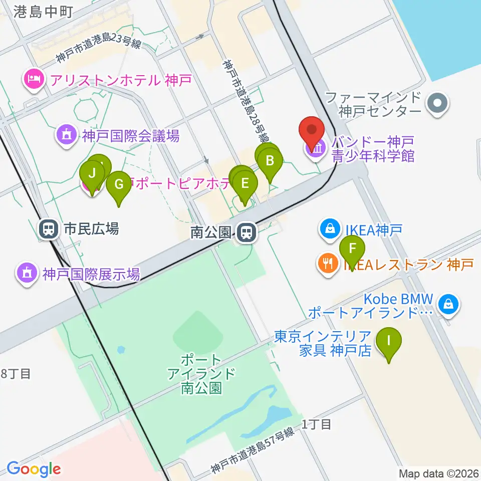 バンドー神戸青少年科学館周辺のカフェ一覧地図