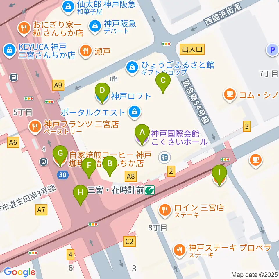 キノシネマ神戸国際周辺のカフェ一覧地図