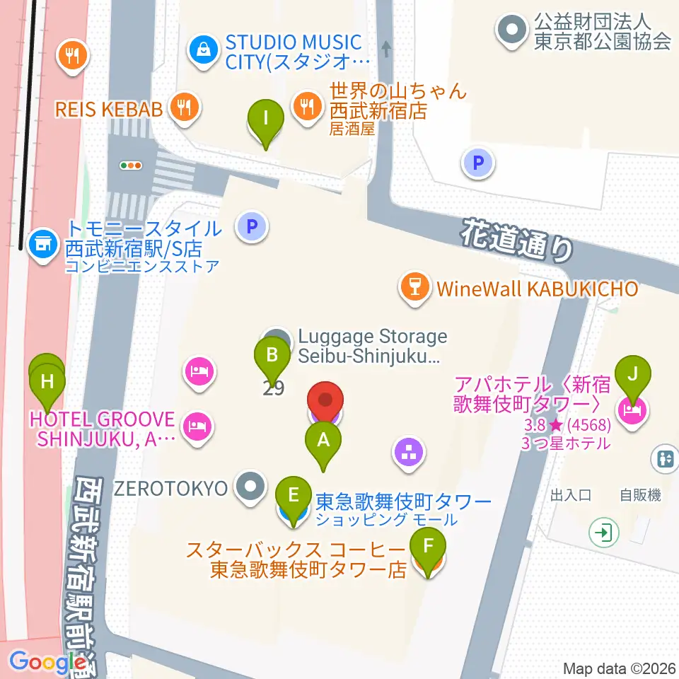 Zepp新宿周辺のカフェ一覧地図