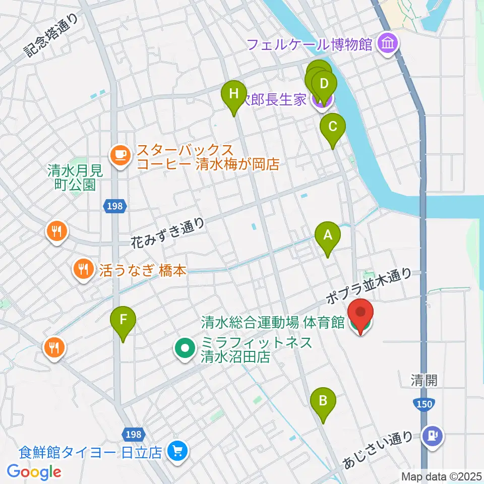 清水総合運動場体育館周辺のカフェ一覧地図