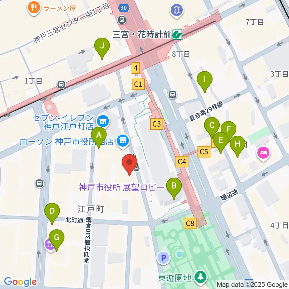 神戸市立中央区文化センター周辺のカフェ一覧地図