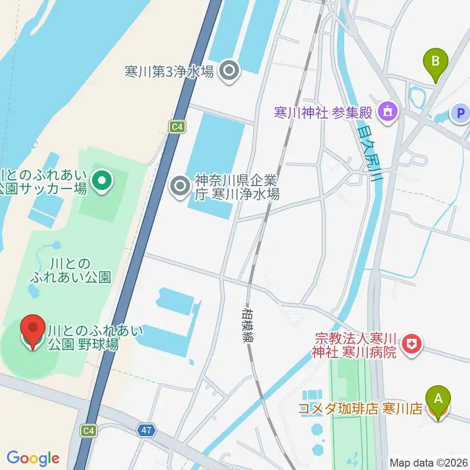 川とのふれあい公園野球場周辺のカフェ一覧地図