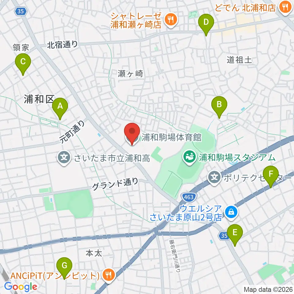 浦和駒場体育館周辺のカフェ一覧地図