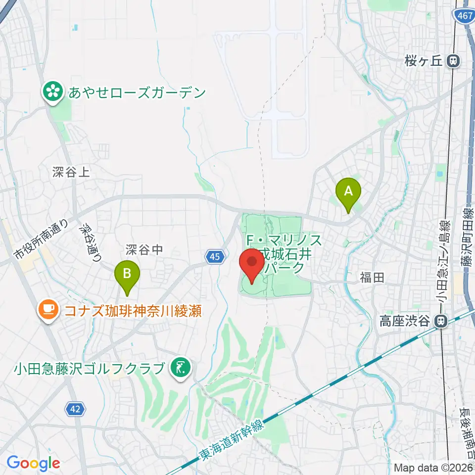 綾瀬スポーツ公園野球場周辺のカフェ一覧地図