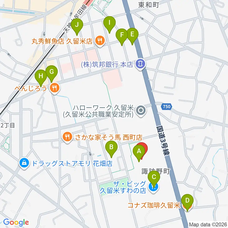 えーるピア久留米 生涯学習センター周辺のカフェ一覧地図