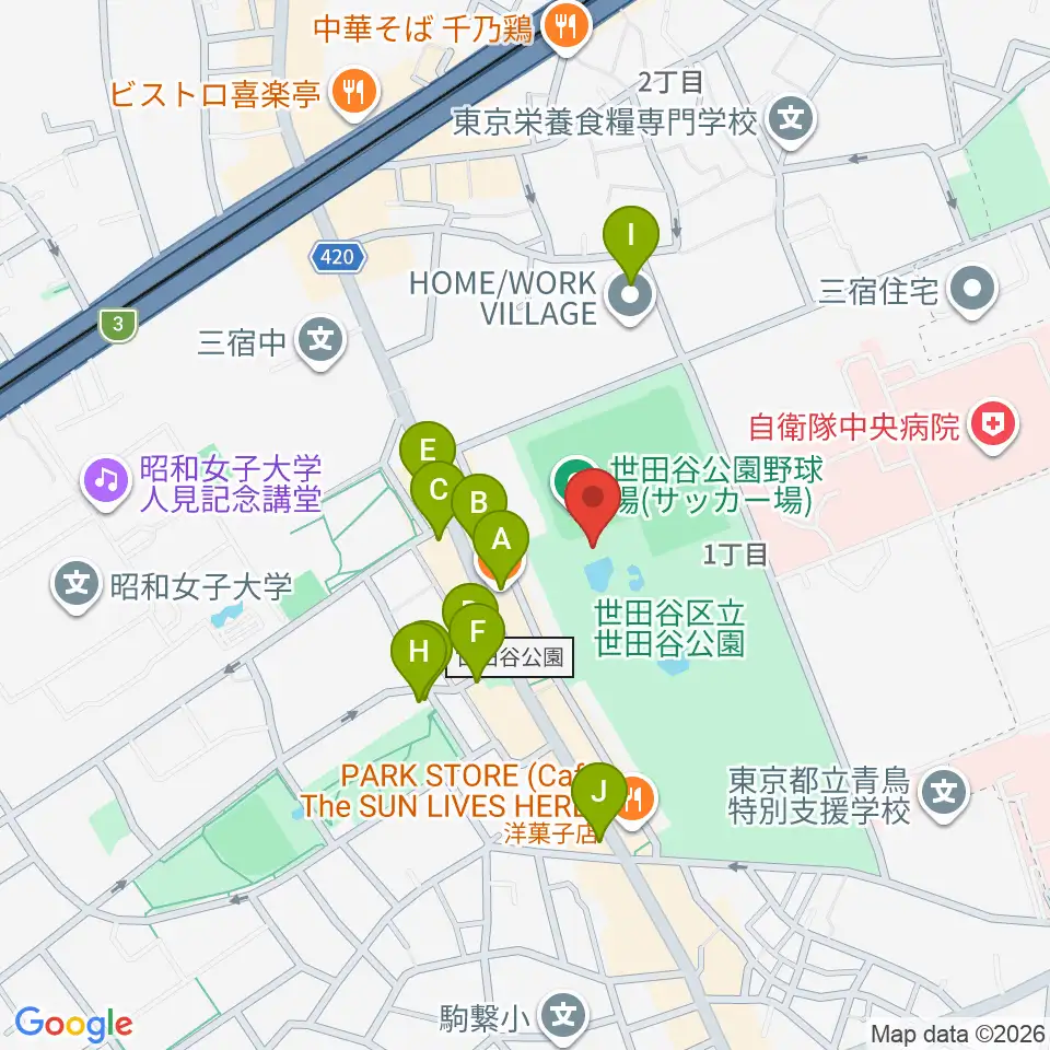 せたがや未来の平和館周辺のカフェ一覧地図