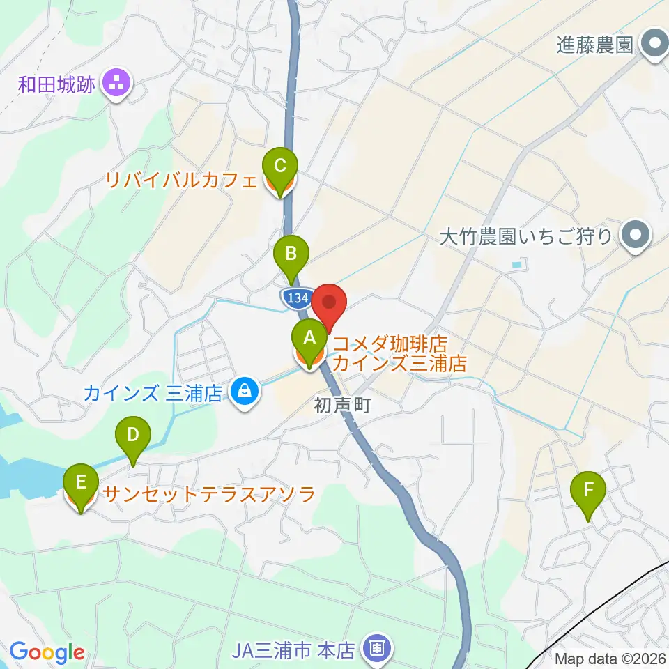 三浦市総合体育館 潮風アリーナ周辺のカフェ一覧地図