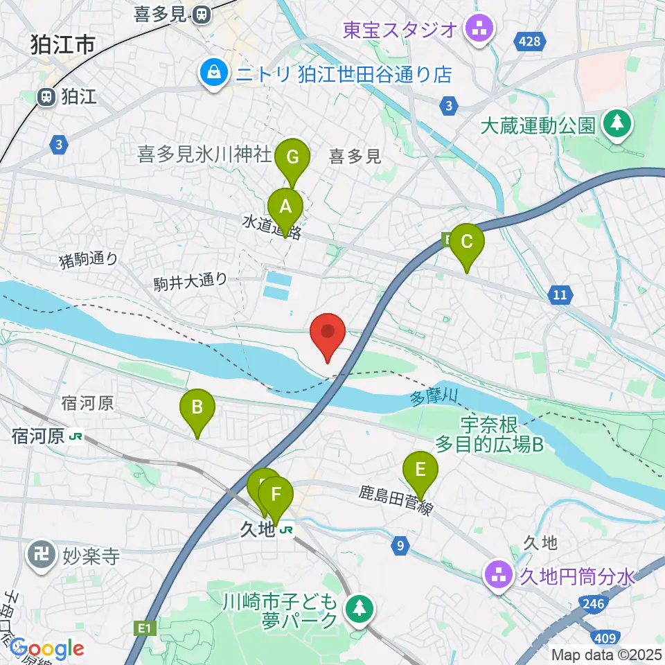 目黒区砧サッカー場周辺のカフェ一覧地図