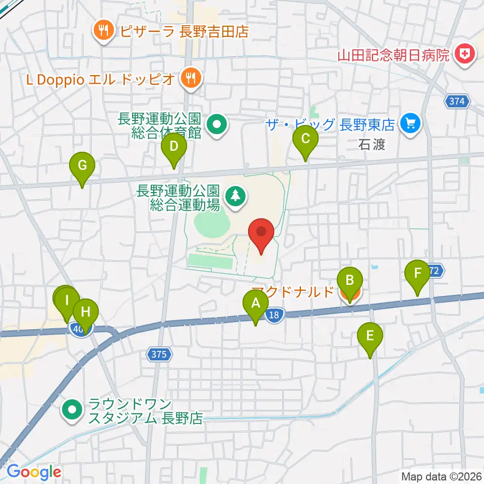 長野運動公園陸上サブトラック周辺のカフェ一覧地図