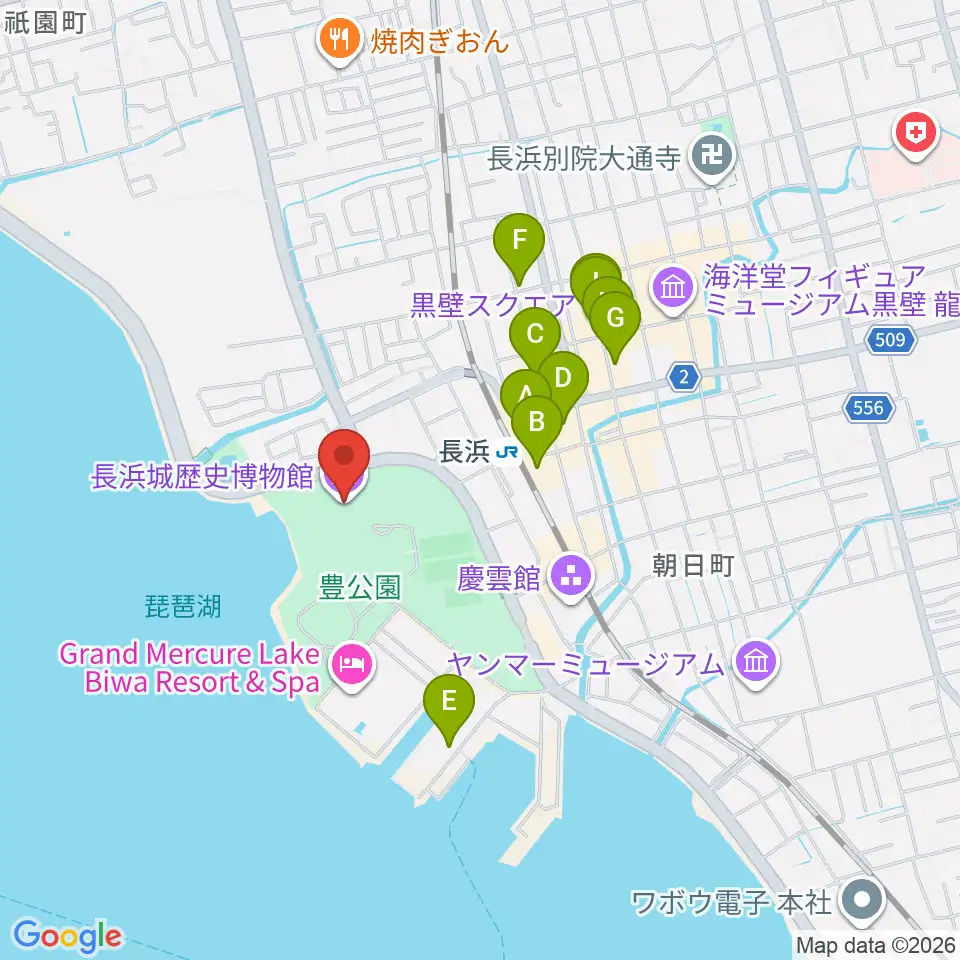長浜城歴史博物館周辺のカフェ一覧地図
