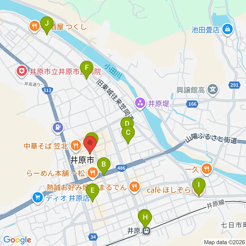 井原市民会館周辺のカフェ一覧地図