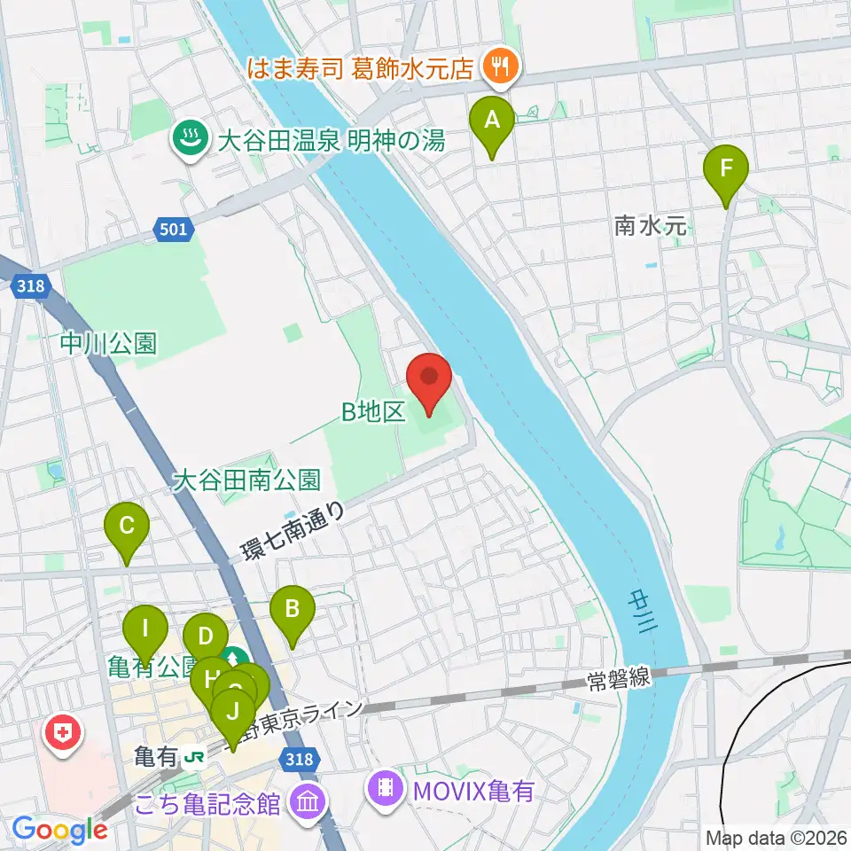 中川公園野球場周辺のカフェ一覧地図