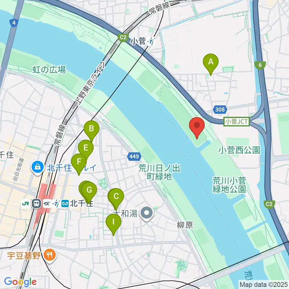 荒川小菅野球場周辺のカフェ一覧地図