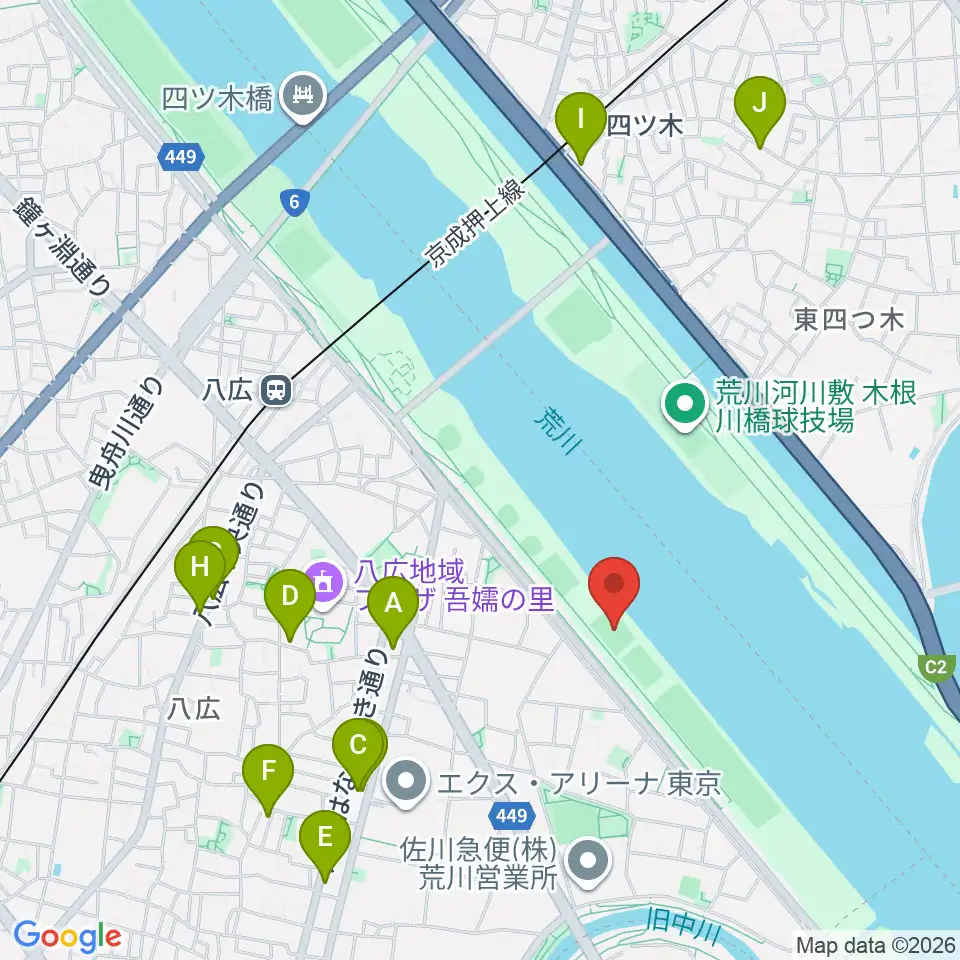 荒川四ツ木橋緑地少年サッカー場周辺のカフェ一覧地図