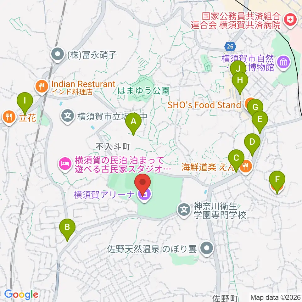 横須賀アリーナ周辺のカフェ一覧地図