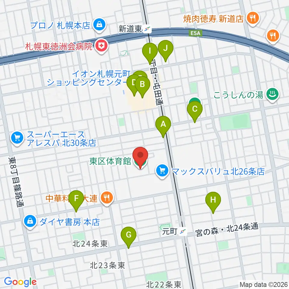 札幌市東区体育館周辺のカフェ一覧地図