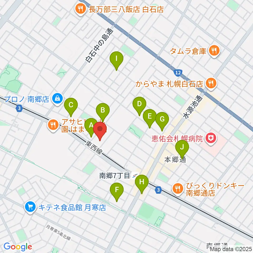 札幌市白石区体育館周辺のカフェ一覧地図