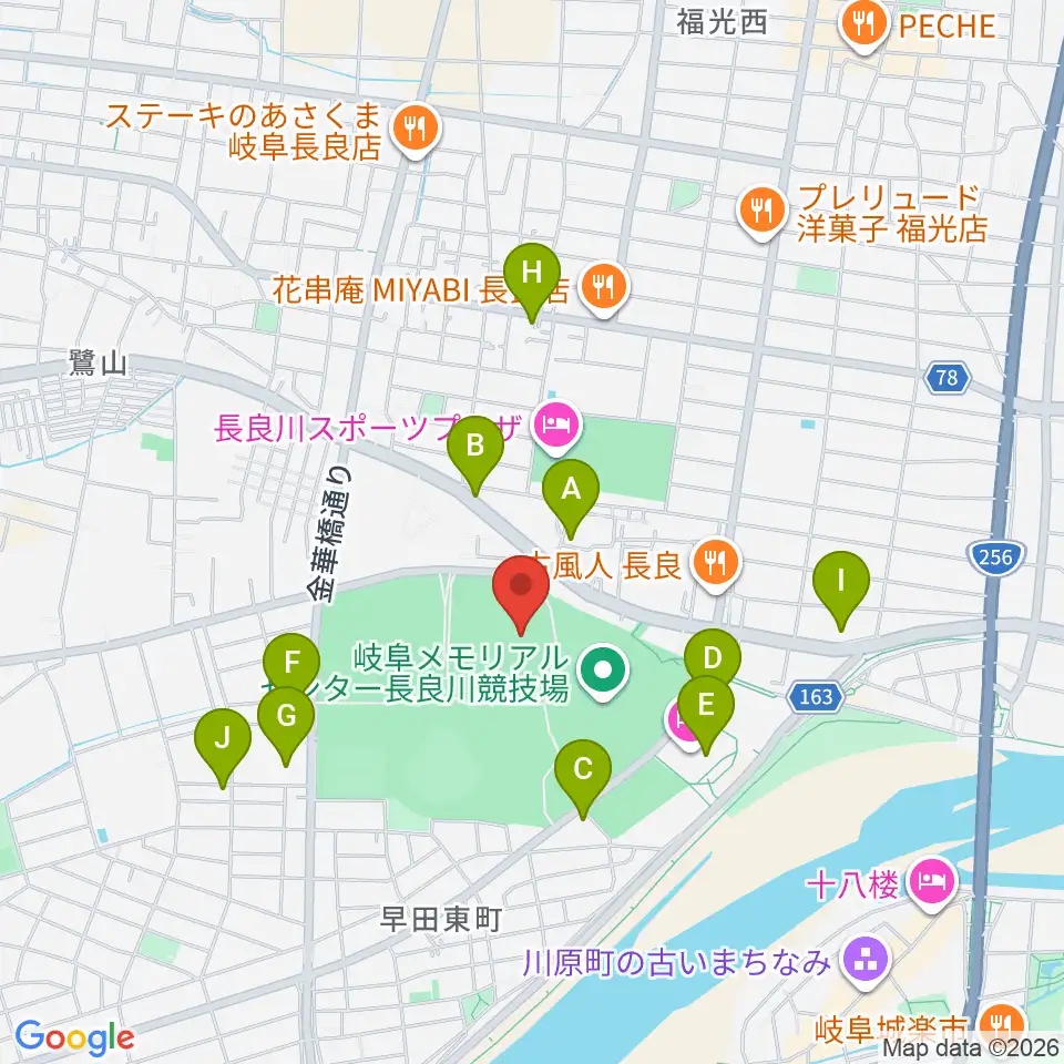 岐阜メモリアルセンター補助競技場周辺のカフェ一覧地図