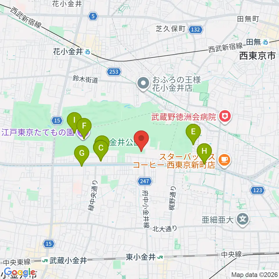 小金井公園弓道場周辺のカフェ一覧地図