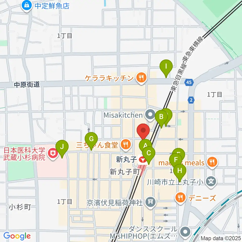 スタジオミュジック 新丸子店周辺のカフェ一覧地図