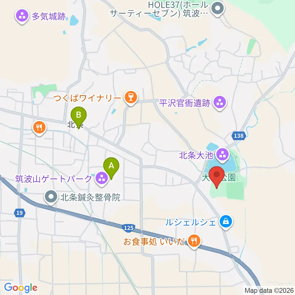 筑波総合体育館周辺のカフェ一覧地図