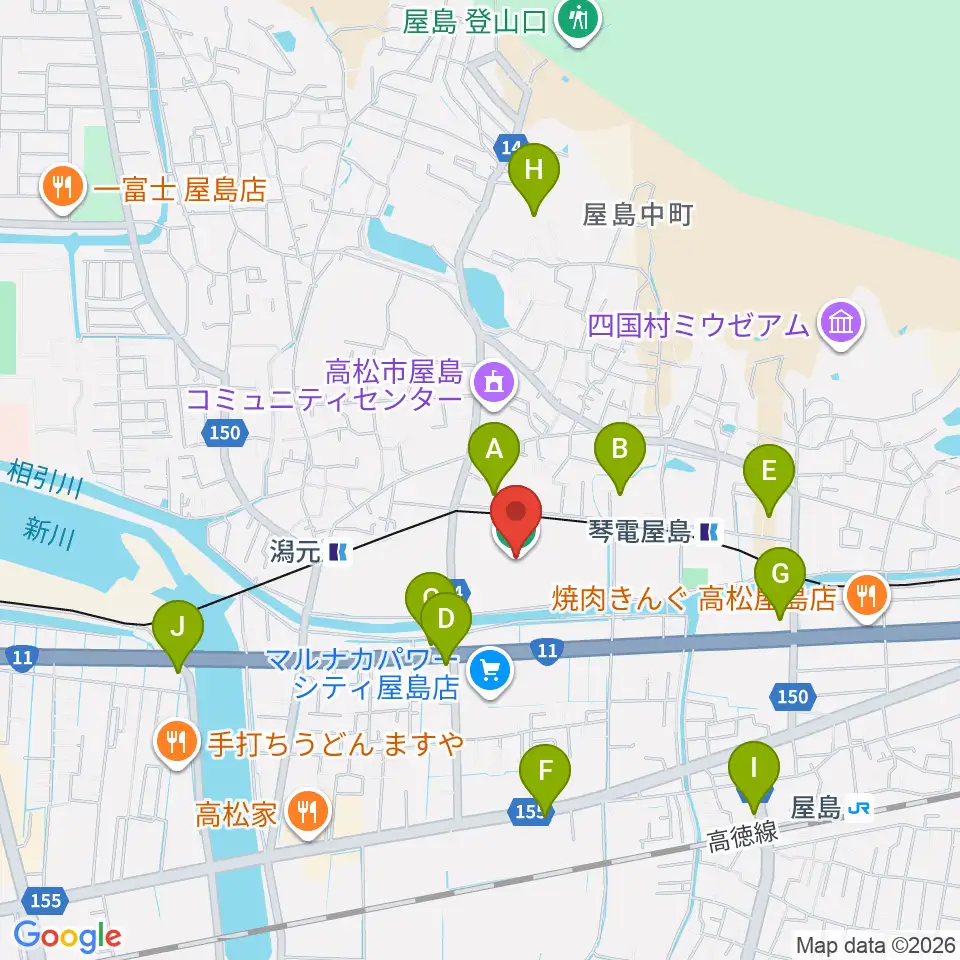 屋島レクザムフィールド周辺のカフェ一覧地図