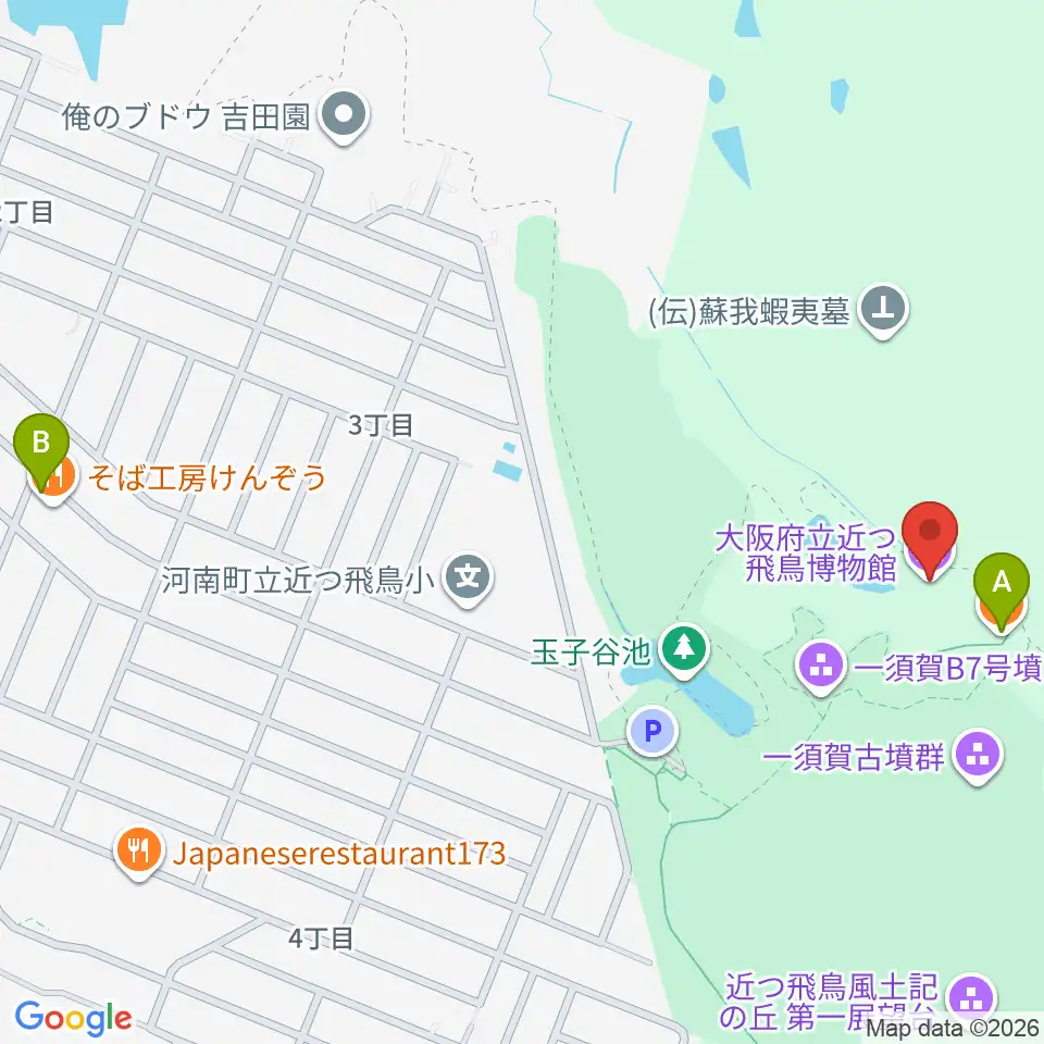 大阪府立近つ飛鳥博物館周辺のカフェ一覧地図