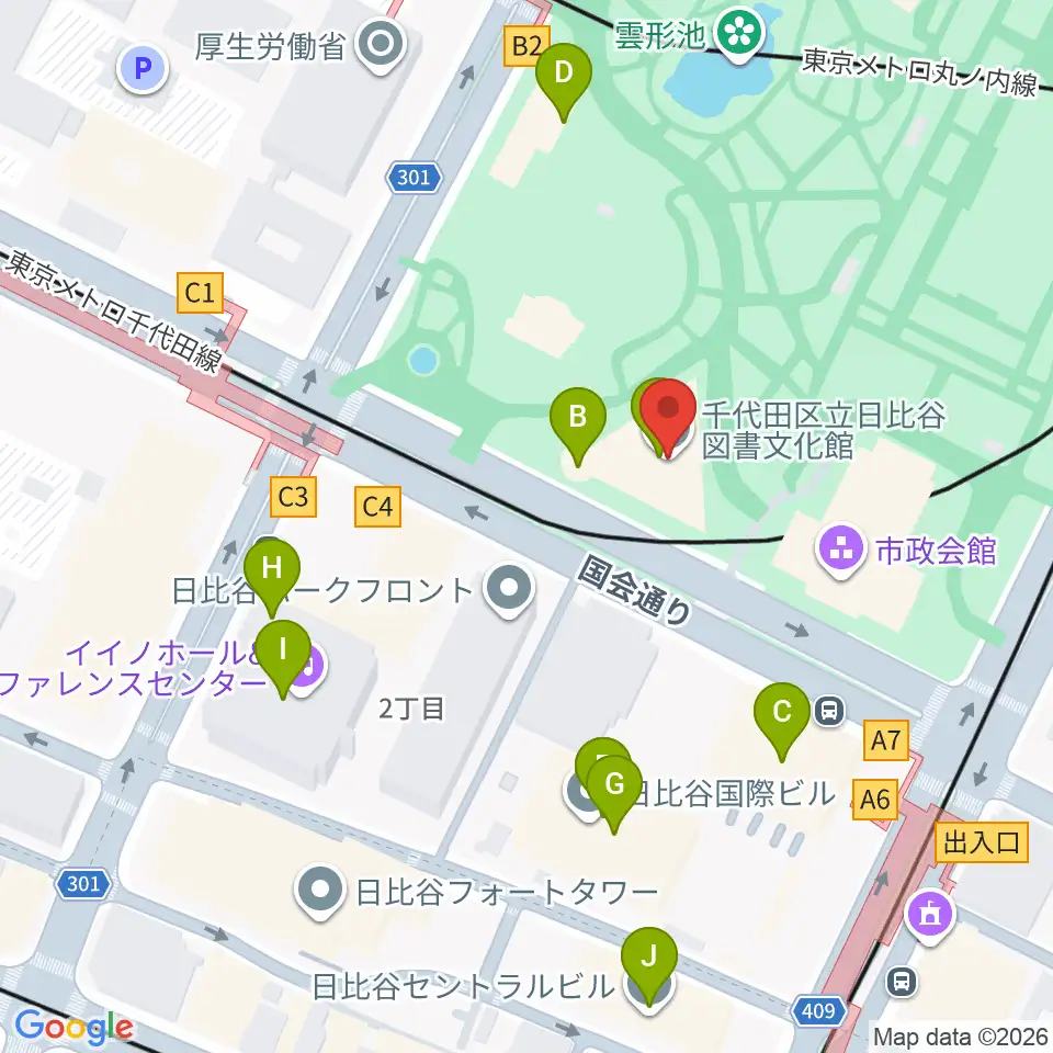 千代田区立日比谷図書文化館周辺のカフェ一覧地図