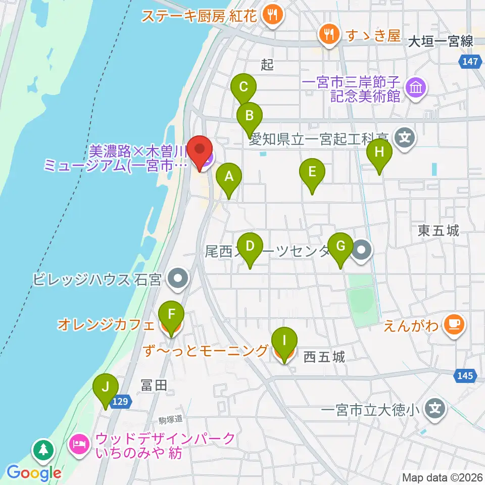一宮市尾西歴史民俗資料館周辺のカフェ一覧地図