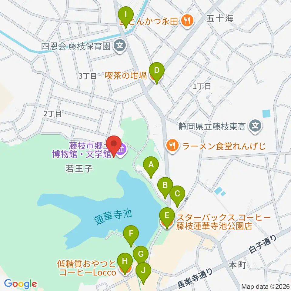 藤枝市郷土博物館・文学館周辺のカフェ一覧地図