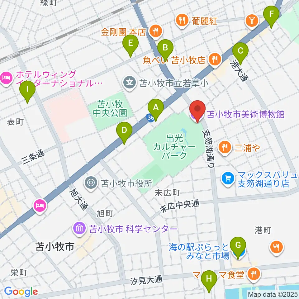 苫小牧市美術博物館周辺のカフェ一覧地図