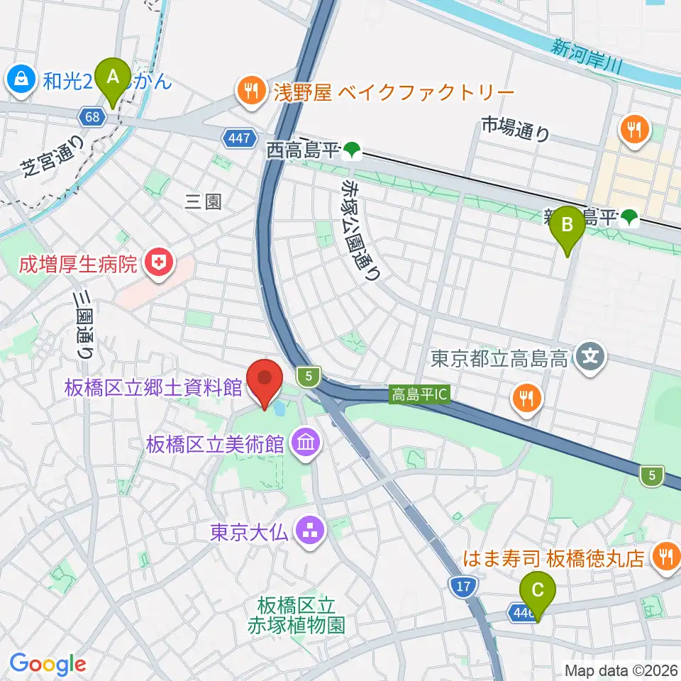 板橋区立郷土資料館周辺のカフェ一覧地図